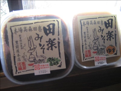 田楽は高森町の郷土料理。田楽みそもコツコツ極まった伝統の味。みずみずしくさわやかな"ゆず味噌"とコクと風味がやみつきの"山椒味噌"豊前屋さんの本格「田楽味噌」是非お試し下さい。